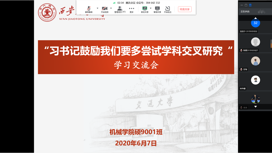 热议《习近平总书记鼓励我们要多尝试学科交叉研究》——9001班、9003班团组织生活会