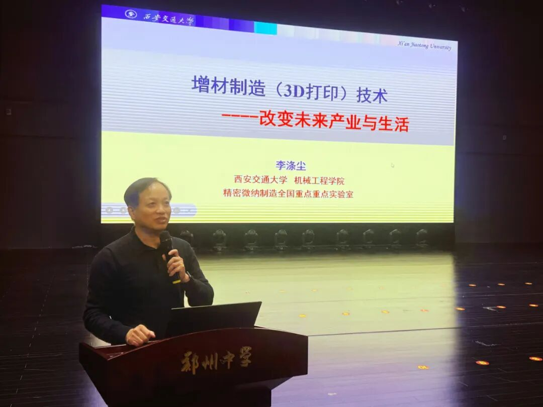 长江学者特聘教授李涤尘先后走进郑州市第一中学和郑州中学,为两校师生带来了一场精彩的《3D打印技术:改变未来产业与生活》科普讲座。作为我国增材制造领域的权威专家,李教授以深入浅出的方式,带领同学们走进了神奇的3D打印世界。