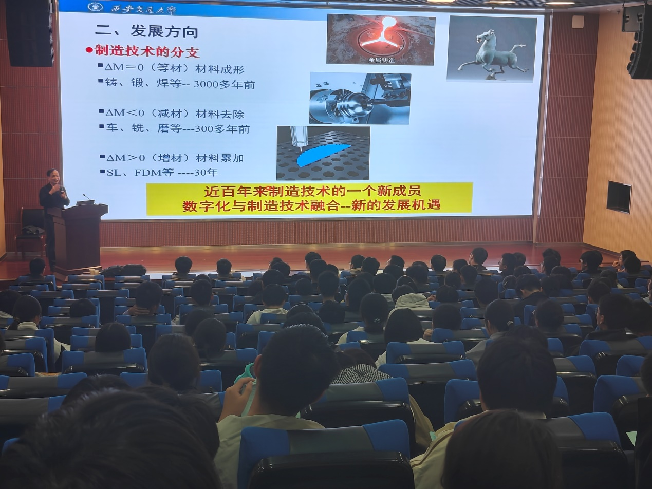 讲座中,李教授首先通过生活中的3D打印应用案例,生动展示了这项技术的魅力。从个性化的医疗植入体到精密的航空航天部件,从创意工艺品到建筑模型,3D打印正在深刻改变着我们的生产和生活方式。李教授还特别分享了我校在生物3D打印领域的最新突破:“我们的科研团队已经实现了人工骨骼的个性化定制打印,这项技术正在西安交大附属医院开展临床应用。”