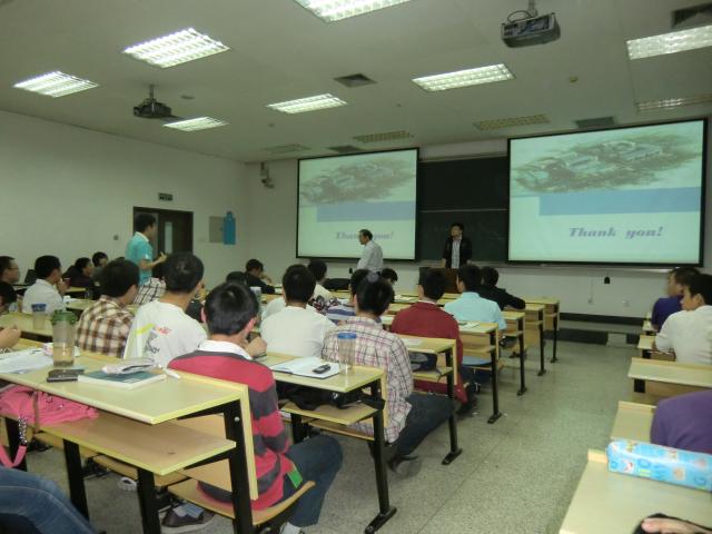 曹教授结合自身的经验谈到了“厚德、和谐、载物”和“为天下人造车”的理念。首先,他提到了正确的做事观,提出一个人要有钻研精神,还要做到学而精,并且指出了正确的做事方法之间的共性。其次,曹教授枚举了很多国内外机械行业的典型实例。接下来,他还谈到如何用正确的方法去引导自己。“世上无难事,只怕有心人”,在电动汽车方面,曹教授整整坚持了17年,正是他的这种超乎一般的坚持,使他实现了自己当初的抱负,也为各位同学将来的科研树立了一个标杆。在谈到近期的研究时,曹教授生动而又具体地描述了自己是如何来一步步攻克科研难题的。曹教授旁征博引,同学们也听得津津有味,在不知不觉中,论坛就在曹教授的讲述中结束了。
