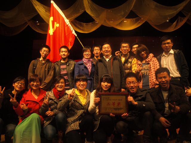 我院代表队由2011级的120位合唱队员和40位旗手组成,指挥由郝婕老师担任。同学们着装整齐,精神焕发,唱歌时而温婉柔情,时而慷慨激昂;指挥激情洋溢,铿锵有力;舞蹈动作到位,感情充沛;全场党旗飘动,人心振奋,整个演出精彩纷呈,美妙绝伦。我院常务副院长洪军教授、分党委副书记訾艳阳教授、副院长李兵教授也与同学们同台演出,现场洋溢着浓浓的师生情谊。我院代表队以优美柔和、富有激情的校歌《为世界之光》和细腻激昂、情感深切的《迎风飘扬的旗》赢得了全场观众的热烈掌声。经过在场专业评委们的评审, 最终以98.90分荣获了本次比赛的第二名。