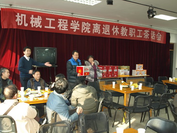 离退休人员迎新年茶话会在交大三村老年活动中心举行。学院党委书记梅雪松、常务副院长洪军、党委副书记杨鹏以及工会主席吴成军与参加茶话会的100余名离退休老同志欢聚一堂。会议由洪军副院长主持。