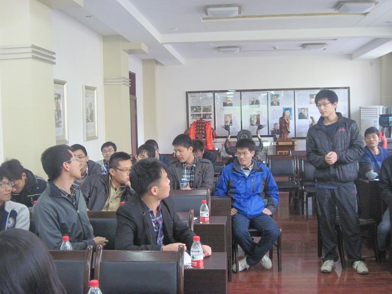 的研究生更应该勇挑大梁,不断探索新领域新知识,用科技创新振兴中国工业;周进、李品、高伟芳等同学表达了支持先就业的观点,并以生动的例子支持了自己的观点;杨文剑、刘伟强、孙文涛等同学表达了支持读博的观点,并以自身的例子说明了读博的原因;刘艳、罗雪、陈成、赵洁等女同志还针对女生读博话题进行了辩论。整个讨论环节热烈而不失趣味,辩论多次被热烈的掌声打断。