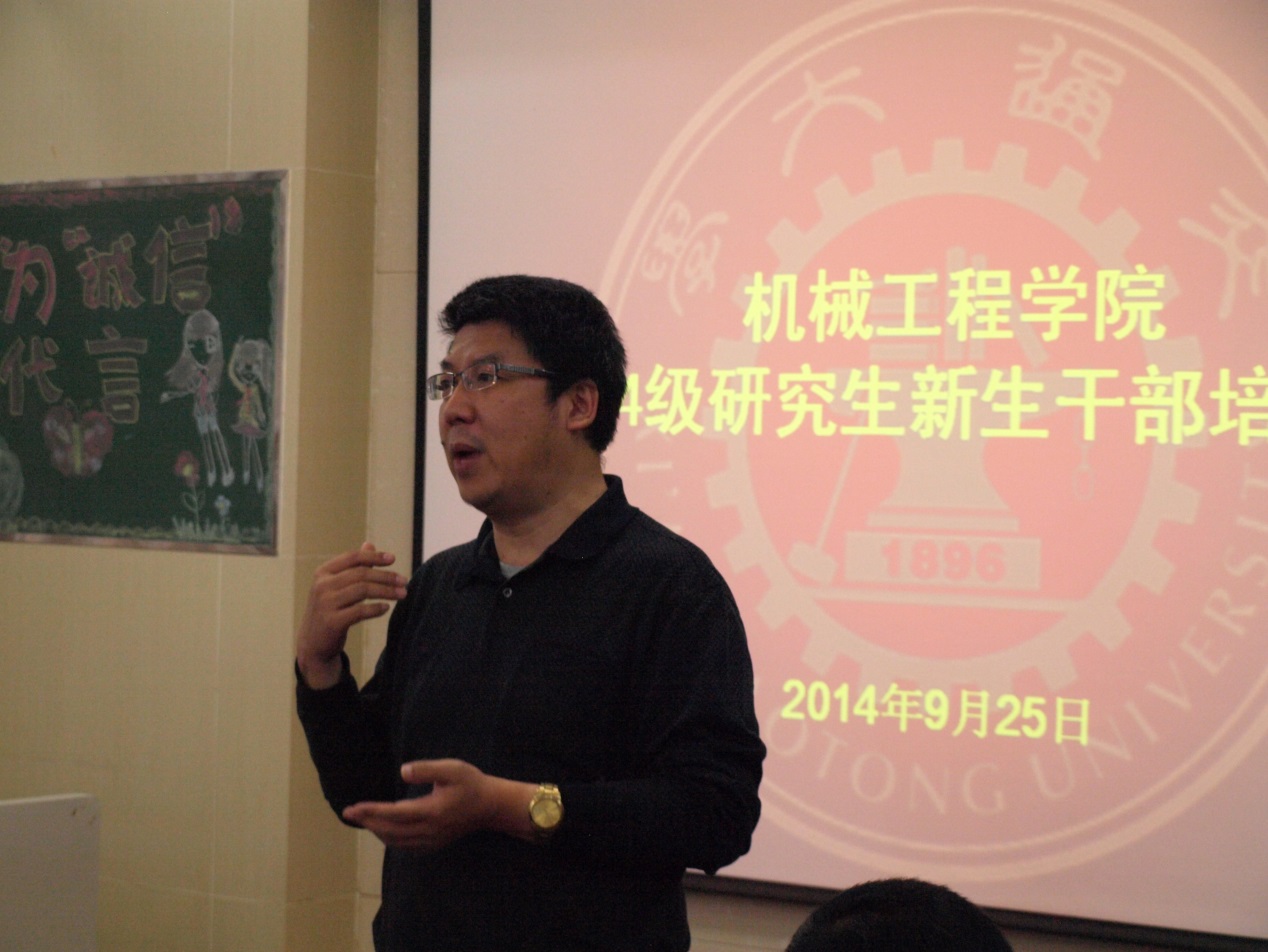 学生处处长尚春阳教授在讲话中重点向大家介绍了学生处的主要职责范围。秉着为同学服务的精神,学生处在食堂、宿舍以及困难自助等方面有着完善的保障体系,为同学们在研究生阶段的学习生活提供有力的后勤保障。尚春阳教授认为,研究生生活不同于本科生活,在认真完成应该做的科研任务之外,应该磨练自身的意志,学会处理好个人的感情问题。另外,他指出交大的学生理应培养自己在团队合作中的领导意识,在工程中不仅技术要过关,领导才能也尤为重要,要做全方位人才。