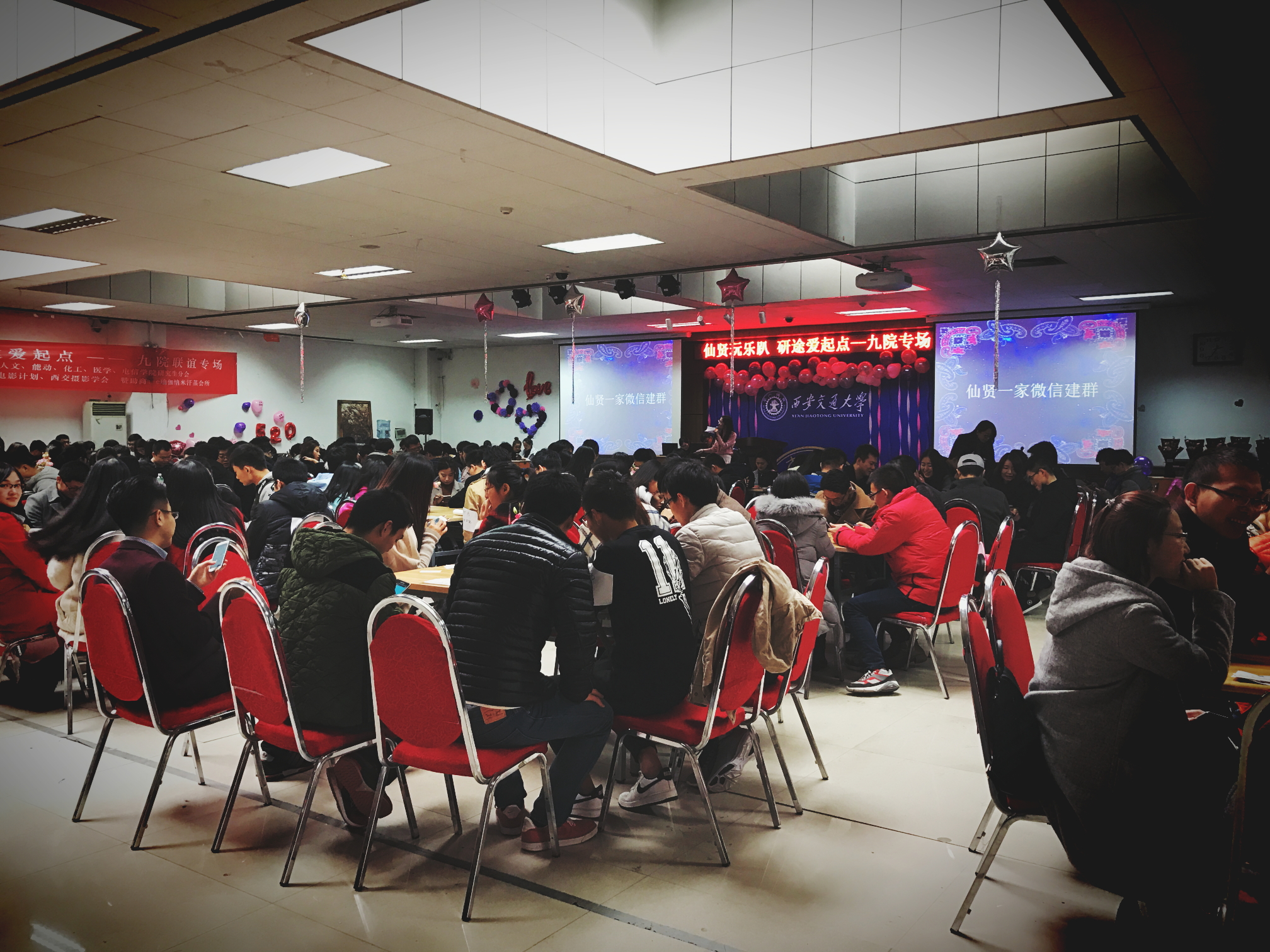 12月11日下午,“仙贤玩乐趴 研途爱起点”九院联谊专场在东校区就业创业中心一楼顺利举办。当日共有300余位我校研究生参与活动,会场布置浪漫,现场气氛活跃,按主题分组参与度高,交流充分,互动有趣,奖品丰厚,得到了参与者的积极肯定。