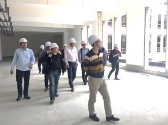 创新港建设主管丁立库老师带领大家参观考察,丁老师认真负责地向大家介绍了研究所预分配实验室和办公场地的功能区域划分,使大家对整体区域有了直观、系统的认识,各位教师根据自己课题中的实验要求和对设备的要求,以学校和学院实验室规划要求为基础,针对研究所的实验室区域划分工作提出了众多建设性的意见。针对大车间15米的层高,大家积极建言,努力做到合理布局,充分利用空间。胡桥副所长以及苏文斌教授结合各自的研究方向,提出了共建陆上水槽系统的意见。