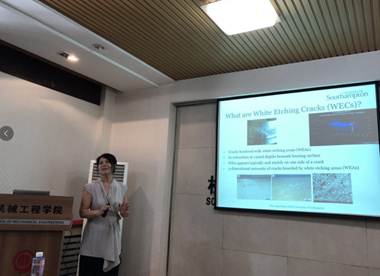 随着风力发电的快速发展,更大的受力和扭矩,使其轴承组件承受着时变载荷,往往产生白色腐蚀裂纹(WEC),从而导致风电系统失效。然而目前,人们对于白色腐蚀裂纹的认识还远不够深刻。Ling Wang教授的报告介绍南安普顿大学国家摩擦学中心的摩擦学研究进展,重点内容涉及到风电机白色腐蚀裂纹(WEC)的产生机制与材料微观组织和表面处理的关系。王老师从氢脆、油化学性质及添加剂、高应力集中、微观滑动、电磁场等多个角度深入探讨了白色腐蚀裂纹的成因和机理,并提出了相应的防护措施。同学们对王老师的研究表现出了浓厚的兴趣,积极和王老师研讨。