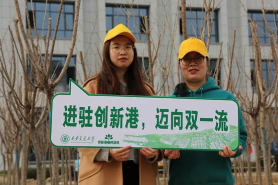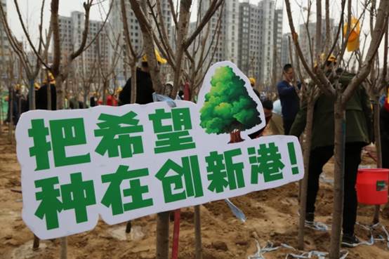 教职工以及100名学生进入创新港植树,成为为创新港的建设添绿的第一学院,贡献每个学生与职工自己微小的力量,为创新港的建设填一抹新绿。