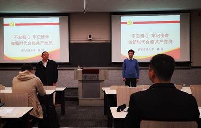 王朝晖强调:作为交大研究生,第一,我们要重视理论学习,当下我们同学虽在工程领域有一定的专业能力,但是思维容易形成定势、全局思考能力不强、思辨能力有待提高;第二,在重视专业领域课程学习的同时,也要重视社会科学、文学领域的学习,做到全面发展;第三,作为共产党员,一定要重视我们党的理论学习,提高自己的政治修养,开拓思路、培养全局意识。