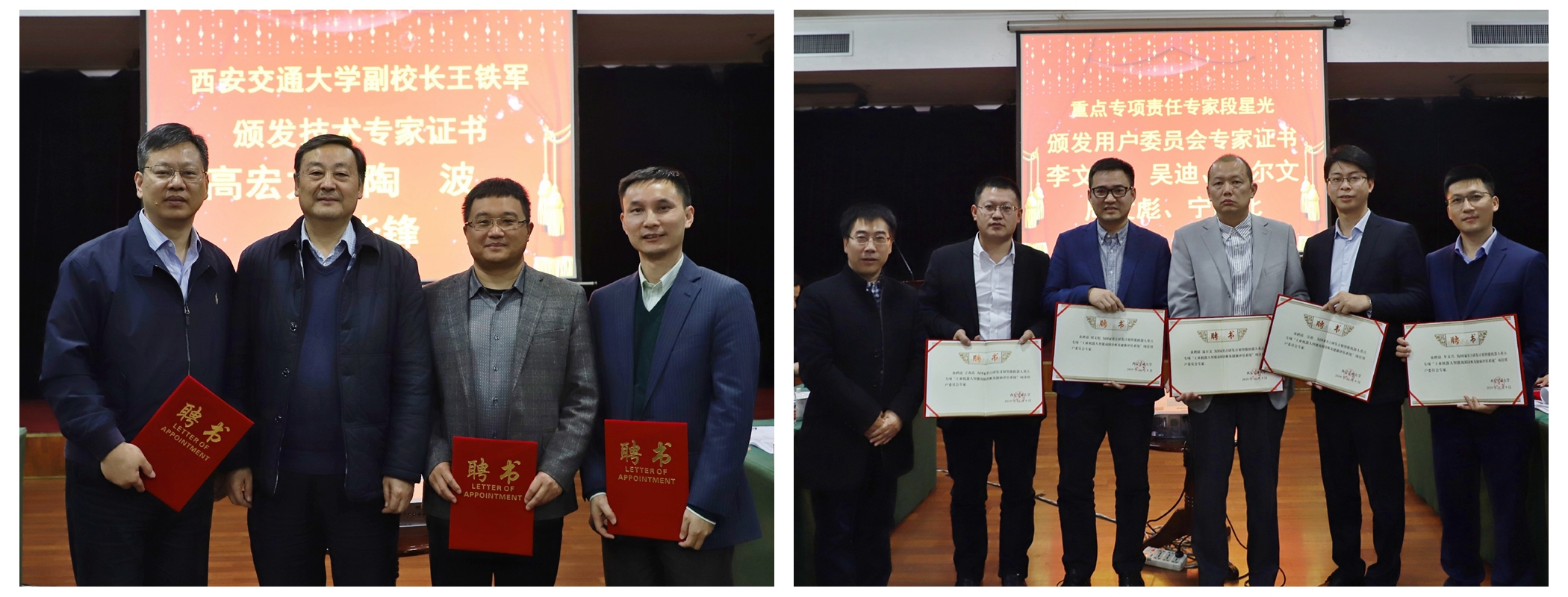 黄忠德副院长宣布成立项目的“两组一委”,并由王铁军副校长、项目总体组责任专家段星光教授为项目技术专家组、用户委员会专家颁发聘书。