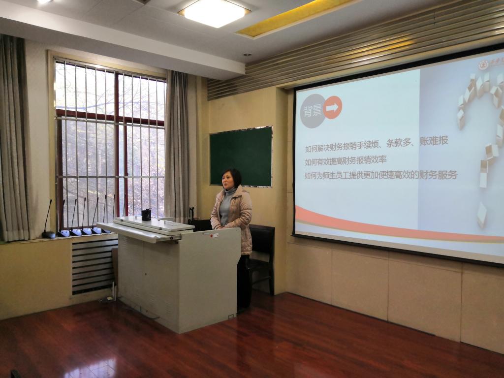 财务处核算管理办公室主管吴婷老师给师生们细致地讲解了日常财务报销政策。吴老师从财务报销的基础知识讲起,详细介绍了网上报账系统操作流程、新启用的学生奖助金发放管理系统、常见报销业务注意事项以及日常报销常见错误等内容,全面系统地介绍了财务报销相关规定。