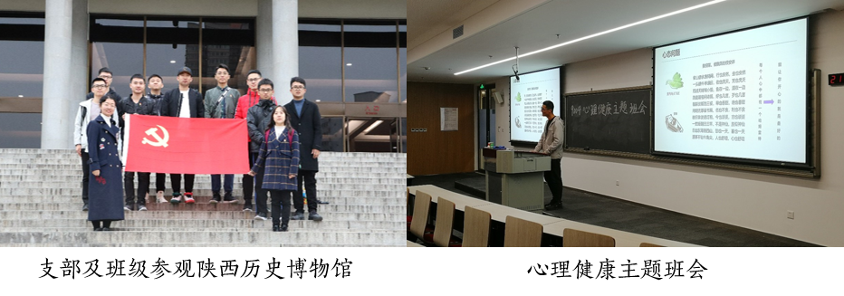 学生党支部是党联系学生群体的桥梁纽带,是引领学生成长成才的奋斗堡垒。支部在组织开展相关活动的过程中,始终坚持党支部发展要带动班级发展,党支部建设也要服务班级建设的理念,使党支部扎根班级,引领好班级发展。为此,支部多次牵头组织开展党班联合活动。参观西安事变纪念馆和陕西历史博物馆、“抗击疫情,我们在行动”、“讨论学习教育部、组织部关于规范SCI论文指标的相关文件”、心理健康主题讨论会等一系列活动从实际出发,联系班级同学切身需求,培养同学们的主人翁意识,真正做到了将党支部融入班级,在班级中发展党支部。