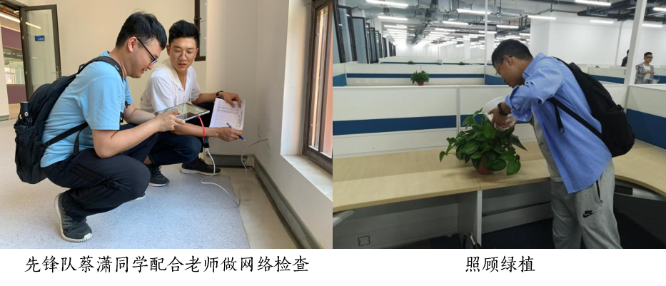 早在入驻前的8月,支部中蔡潇、徐鹏程、井龑东三位党员同志就已作为青年先锋队的成员,提前来到了创新港。在老师的带领下,他们对教室网络、宿舍通电通风等情况进行了排查。他们一边发现,一边主动反馈,为同学们顺利入驻创新港做出了重要贡献。