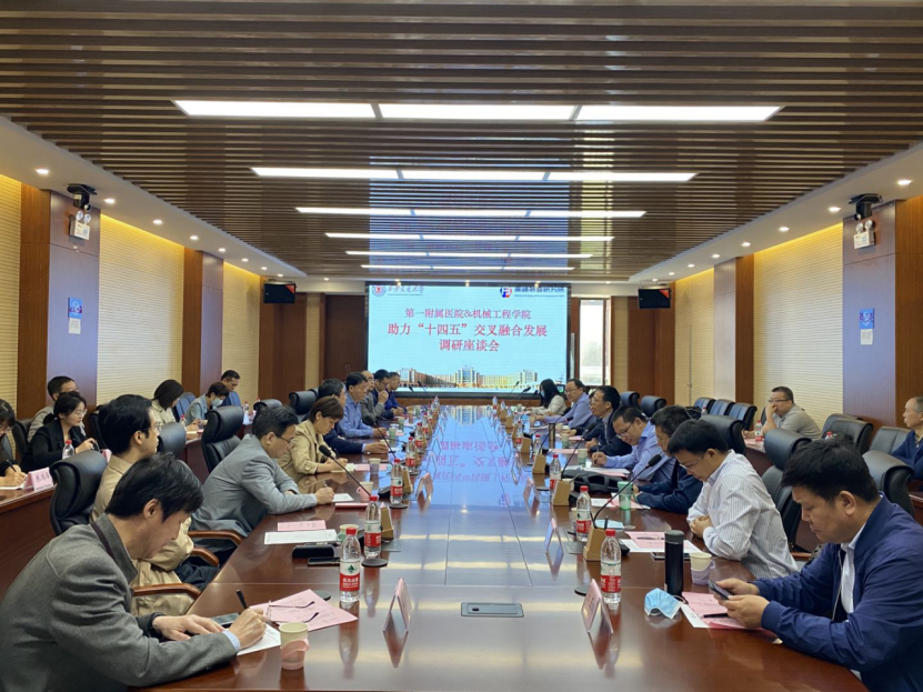 /高端装备研究院教师代表概述了脑机接口与神经调控、3D打印医疗器械、医疗机器人等科研成果在临床上的应用与发展前景;交大一附院专家代表介绍了脑瘫儿童检测、胃肠疾病靶向治疗、甲状腺肿瘤筛查等疾病检测与治疗方面医工交叉创新需求。同时,双方领导针对未来交叉合作事宜进行研讨部署。