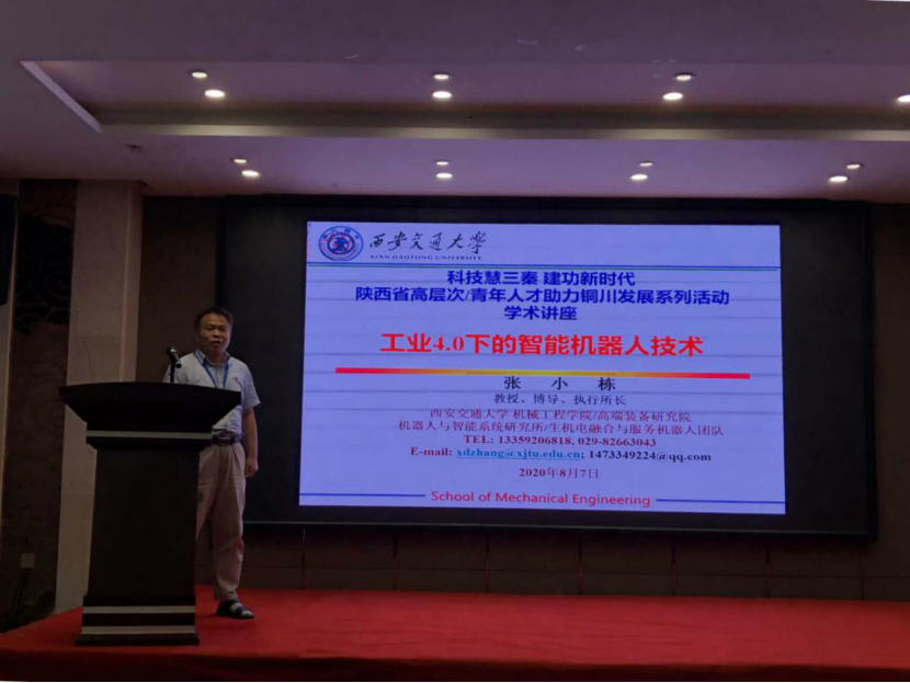 张小栋教授以国内外工业4.0及其机器人技术发展为背景,结合铜川市产业发展升级与转型的需要,为铜川市的政府部门领导和企业家们深入浅出地讲了工业4.0概念、中国制造2025以及我院智能机器人技术的研究和发展情况。