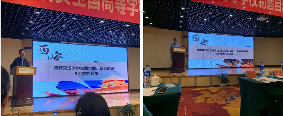 党委常委、校长助理洪军教授分别致欢迎辞;中国机械工程学会机械工业自动化分会副秘书长尹作重主任、中国振动工程学会动态测试专业委员会主任委员杨世锡教授分别致贺辞。