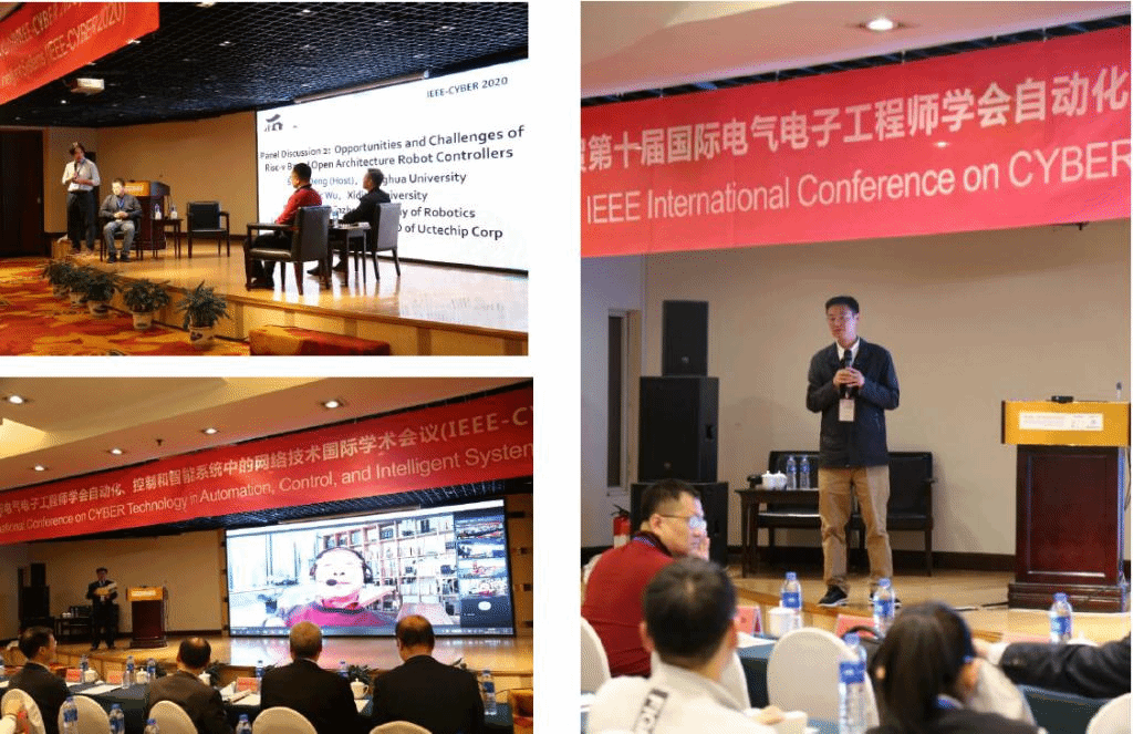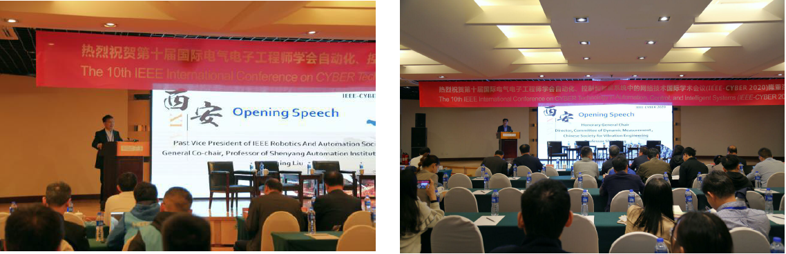 10月10日是本次国际会议的报到注册日,同时也迎来了来自全国各地的110名全国高等学校制造自动化研究会的理事和会员,在会议酒店隆重举行了中文“Workshop on Manufacturing Automation of IEEE-CYBER 2020暨全国高等学校制造自动化研究会第19届学术年会”,为随后三天的国际会议顺利召开营造了活跃气氛。IEEE-CYBER 2020国际会议紧紧围绕“机器人技术、控制/自动化、网络物理系统、物联网和传感器网络”等主题,以中文研讨会(Workshop)、主题报告(Plenary Speaker)、专题报告(Keynote Speaker)、专题讨论(Panel Discussion)、分组报告(Oral Presentation Session)、海报展示(Poster Presentation Session)等多种形式,就机器人、物联网等热门前沿技术领域展开了深入的交流,现场气氛十分热烈。