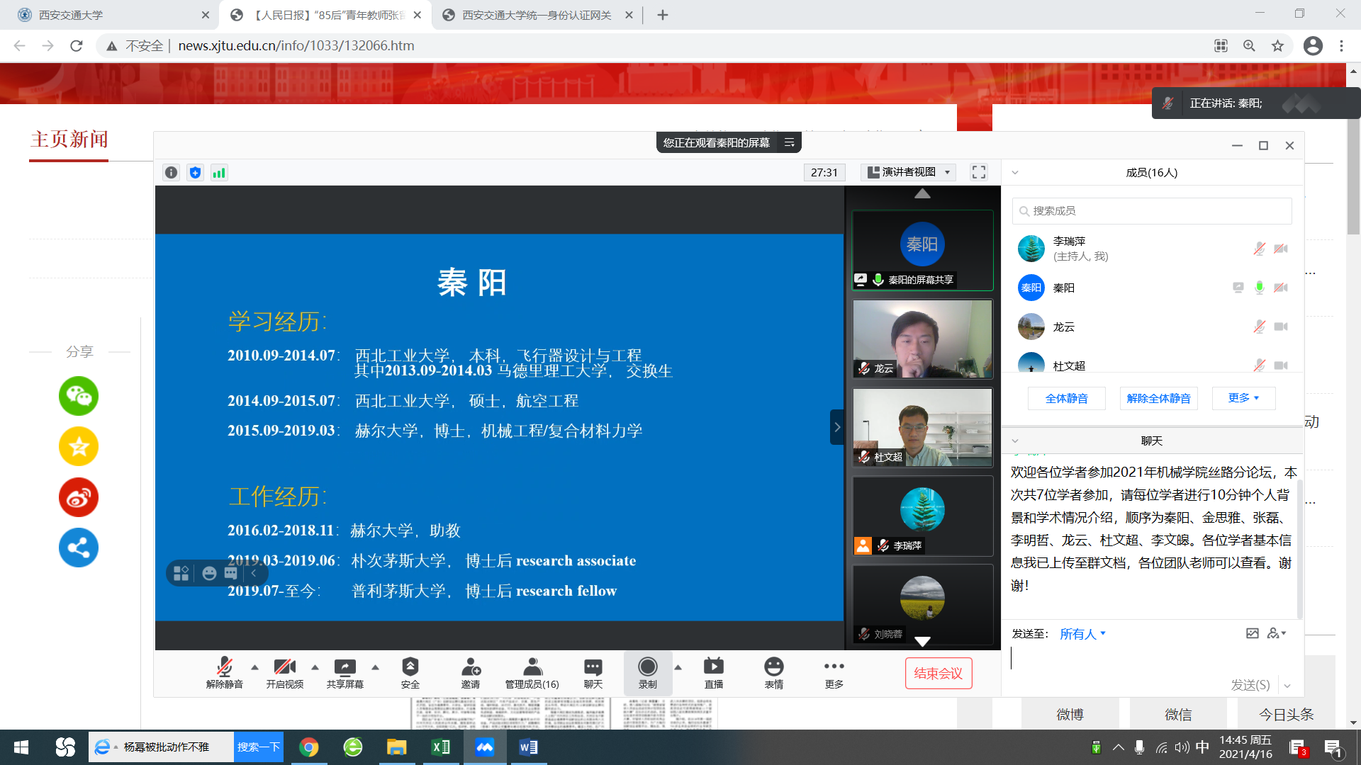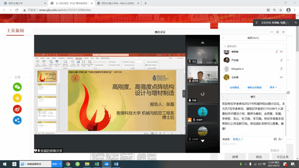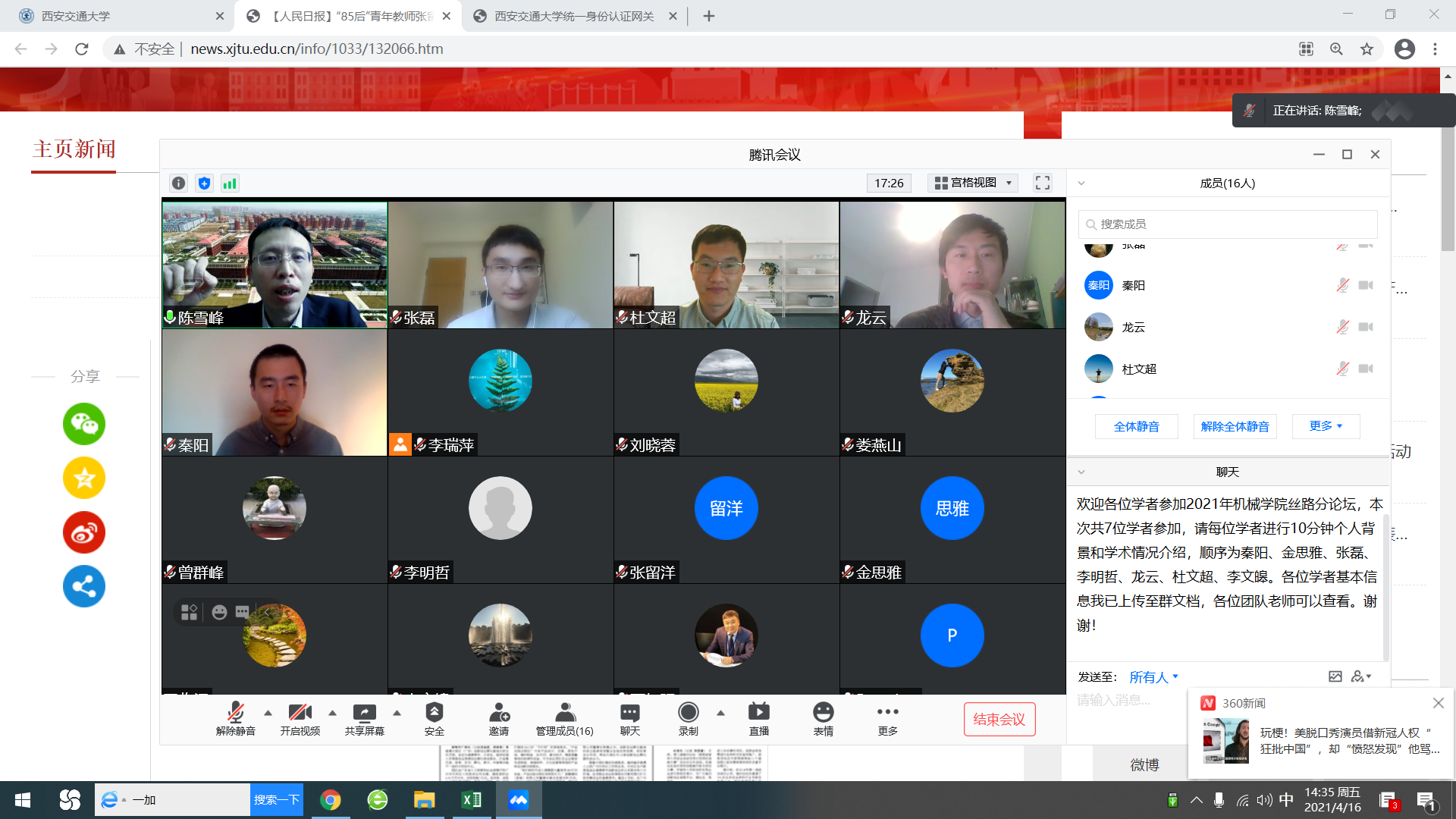 4月16日下午,第七届“丝绸之路青年学者研讨会”机械分论坛以线上方式召开。来自海内外不同国家的青年学者、学院青年人才及各相关领域的团队负责人通过网络会议“见面”、交流。国产探花