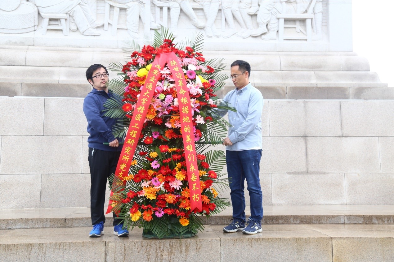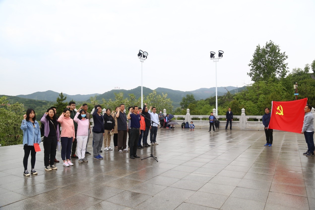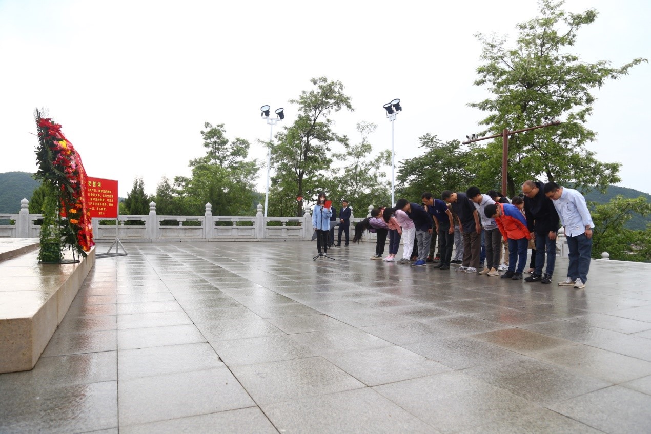 下午两点,大家怀着崇敬的心情来到了“陕甘边革命根据地照金纪念馆”。在讲解员的带领下,大家认真参观了纪念馆中陈列的革命文物和相片,聆听了刘志丹、谢子长、习仲勋、李妙斋、周冬至、杨在泉等革命先烈的英雄事迹。大家深受震撼,为他们在异常艰苦的革命岁月里不屈不挠、奋勇抗争的革命精神所鼓舞。参观结束后,大家来到了陕甘边革命根据地英雄纪念碑前开展了纪念活动:首先,赵立波老师与田边老师代表大家向革命英雄敬献了花篮;之后,老师们一起向创建陕甘边革命根据地的英雄们三鞠躬;最后,在党支部书记丁建军老师的带领下,大家面对党旗在纪念碑前重温了入党誓词。