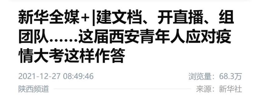 26日,玖宫格成员接受新华社采访,在报道中他们展现了交大学子积极向上,乐于奉献的一面。“愿疫情早日结束!”“西安交大加油!”在直播弹幕中,温暖的话语鼓舞着每个看直播人的心。“我们还会在直播中提供点歌服务,放一些同学们想听的歌,让大家放松心情。”胡晓坤笑着说,“疫情的阴霾终将散去,我们有信心!”