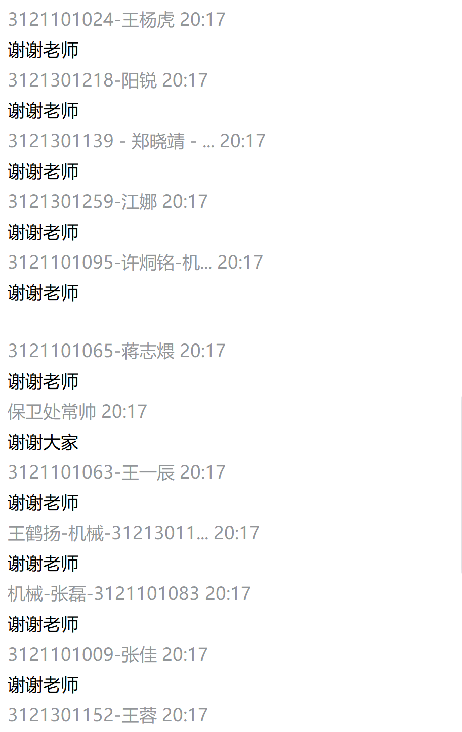 图5 同学们在聊天框对老师表示感谢