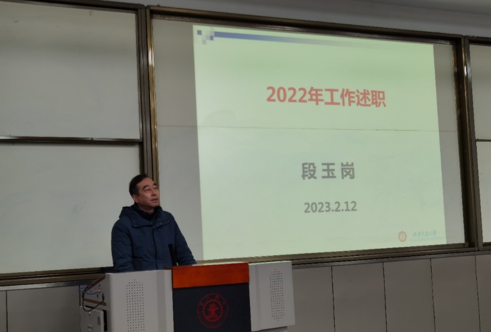 在兴庆校区中二楼1200大教室召开2022年全院教职工大会,认真总结2022年工作,科学谋划2023年工作。会议由学院工会主席戚社苗老师主持。