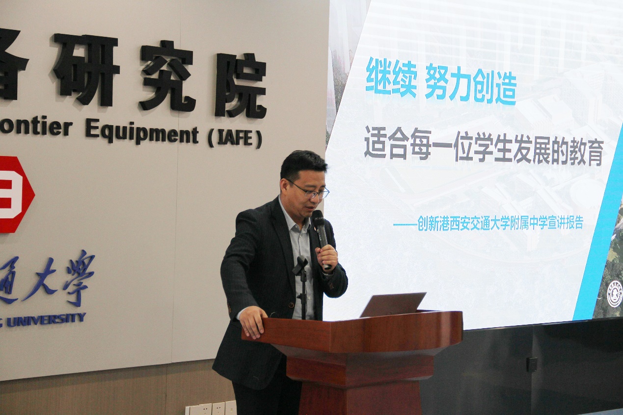 联手探索机制体制创新的重要举措,首创基础教育合作办学“双直属”新模式,既享受公办学校政策支持,又发挥高校资源调配优势,开启校地合作、创新发展。会上,西安交大附中副校长、西安市创新港中学执行校长窦小刚从硬件条件、名师引领、教育教学三个方面介绍了创新港西安交大附属中学的基本情况,他表示“新港附中是一所能在渭滨河畔求新知,生态湿地塑身心,大树森林育新苗的生态中学,其将继续坚持“努力创造适合每一位学生发展的教育”的理念,将资源最大限度的向服务学生倾斜,建设高标准、国际化、智慧化中学”。