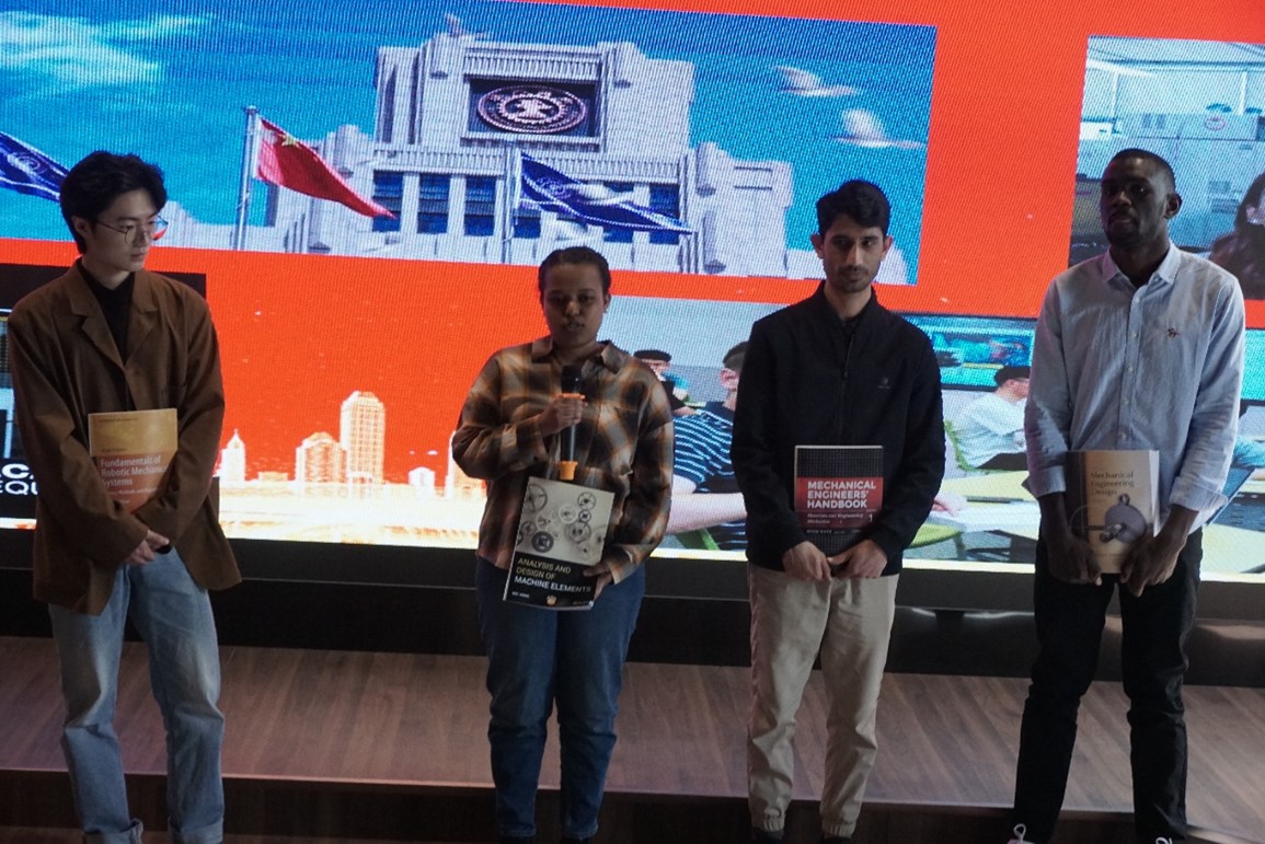 第三项是国际留学生书籍捐赠仪式。“世界制造之窗”图书馆立足机械,着眼世界。此次仪式邀请到国际教育学院司晶老师及4位留学生为学院捐赠专业书籍,同时为学院送上衷心祝福。