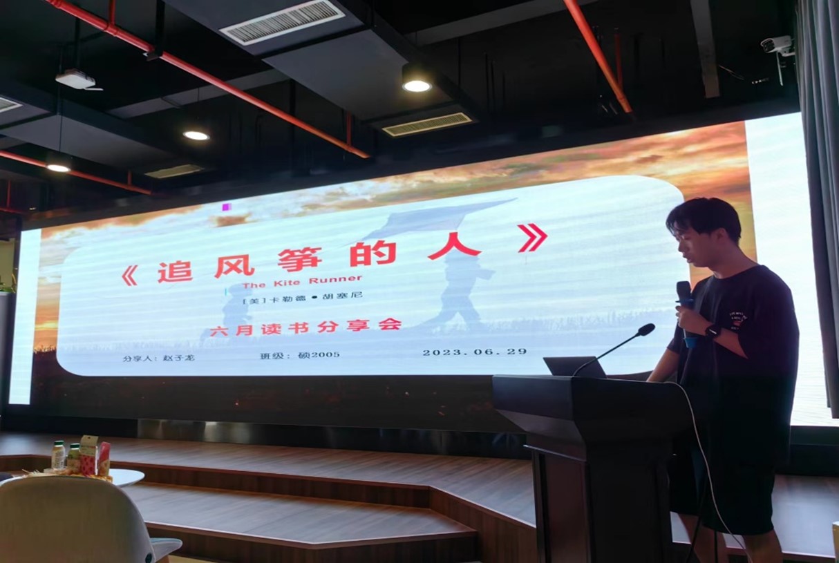 研究生赵子龙则通过《追风筝的人》来告诉大家如何去挑战人性的懦弱与自私?如何去发扬和保护良知?当被人性弱点扼制之时,我们都要鼓起勇气,勇敢地踏出那一步,勇敢地去救赎,突围而出,大声地喊出属于你的:为你,千千万万遍。