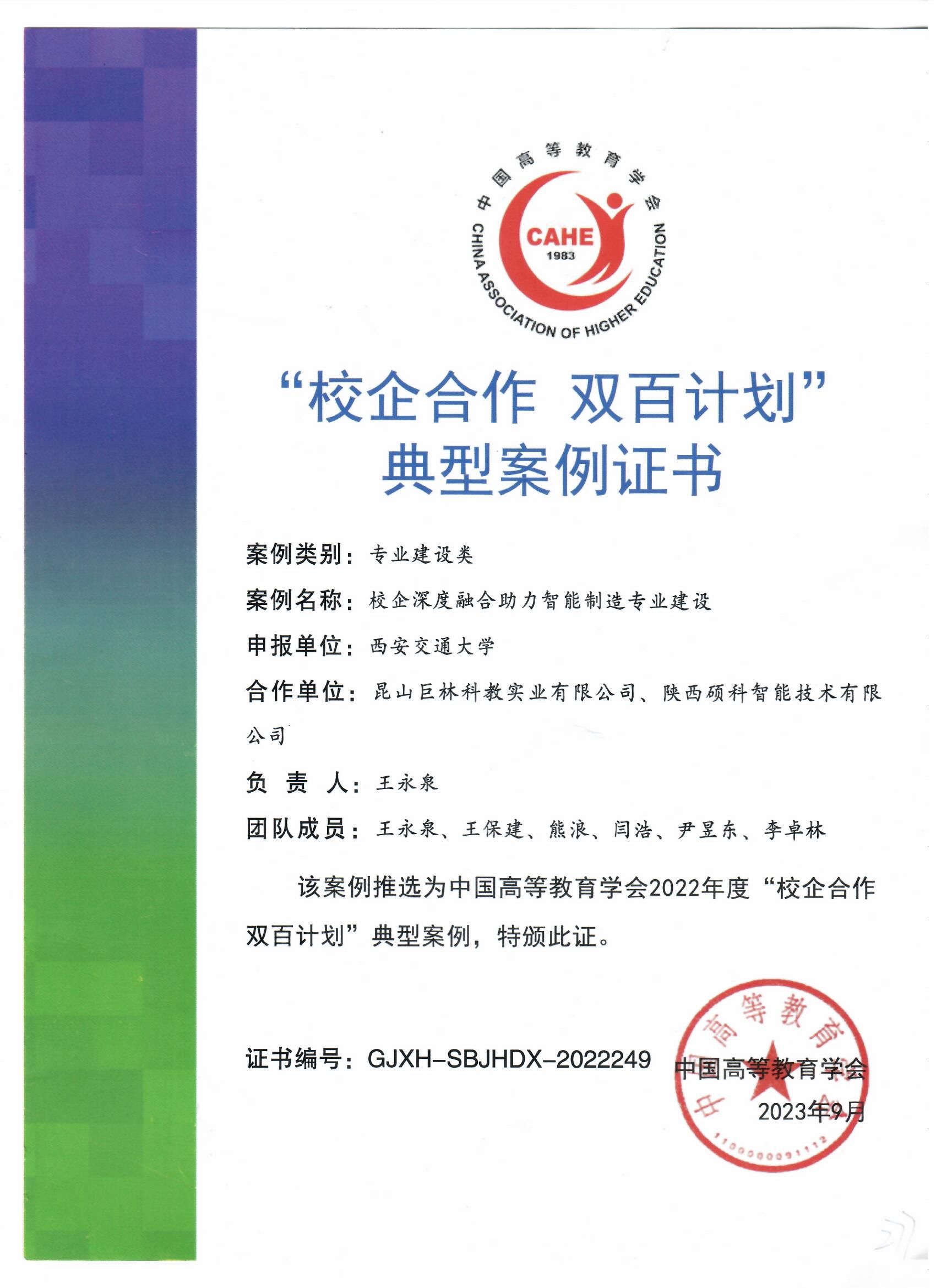 案例“校企深度融合助力智能制造专业建设”认定为中国高等教育学会2022年度“校企合作 双百计划”典型案例。国产探花