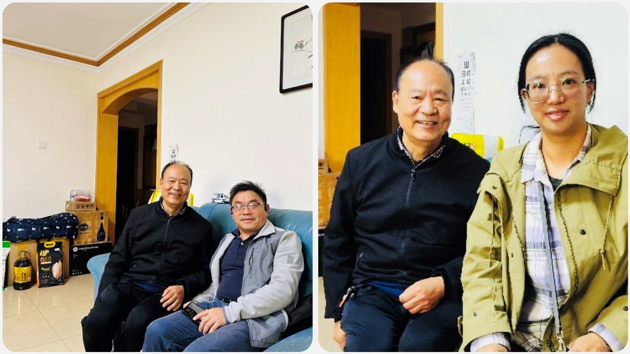 装备智能诊断与控制研究所支部、工会和学生支部代表对退休的老教师们开展了慰问活动。多位90岁高龄的老师看到青年教师和学生们上门走访,都非常的热情。王朝明老师住在七楼,他告诉我们新加装的电梯让生活更加便利;“老锻压”的胡美玲老师热情接待大家到屋里做客,谈起老两口每天还能通过彩虹桥到校园里散步,并询问了青年教师的发展和进步;张娴如老师也关心着现在学院和学科的发展情况。