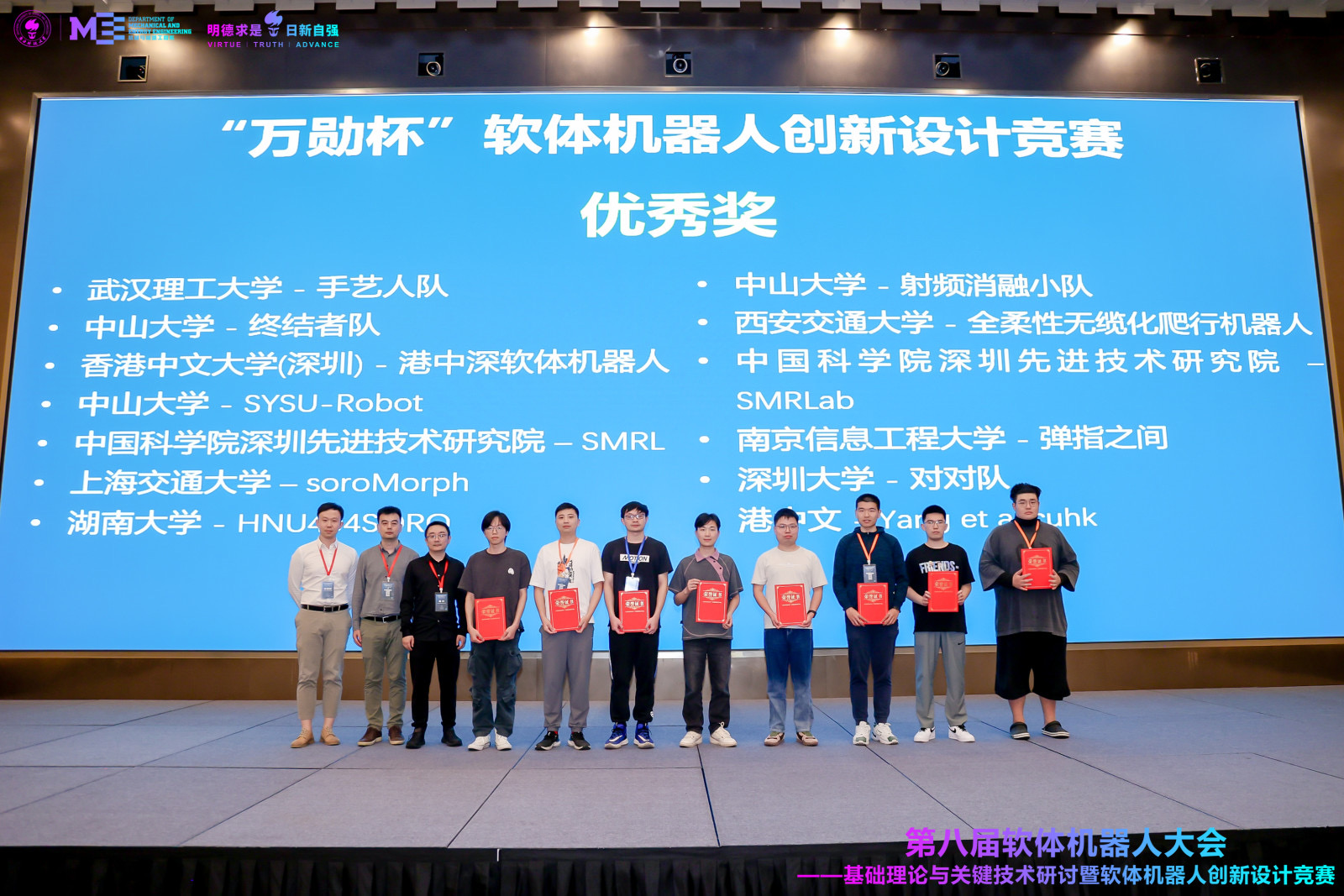 2023年11月24日至26日,第八届软体机器人大会——基础理论与关键技术研讨暨软体机器人创新设计竞赛在南方科技大学举行。软体机器人创新设计竞赛每年与软体机器人大会同时举行,本次“万勋杯”软体机器人创新设计竞赛,共收到了包含清华大学、香港中文大学、国产探花