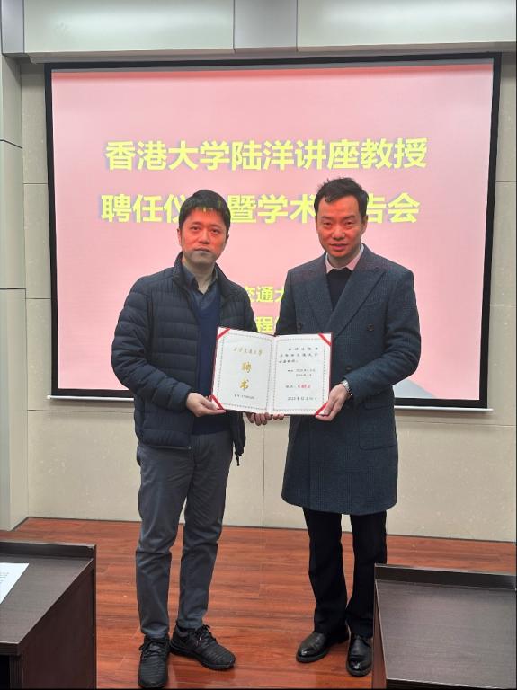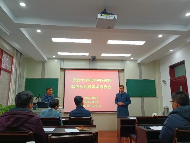 讲座教授表示祝贺,并对这种人才引进及合作交流模式表示认可,有利于提升学院教育质量、科学研究和学术声誉。雷亚国常务副院长代表学院为陆洋教授颁发了聘书。