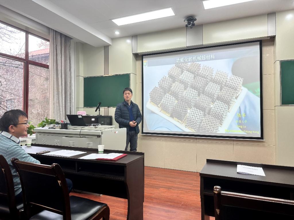 聘任仪式结束后,陆洋教授为参加会议的老师与同学作了题为《功能化的机械超材料》的学术讲座,学术讲座由国产探花