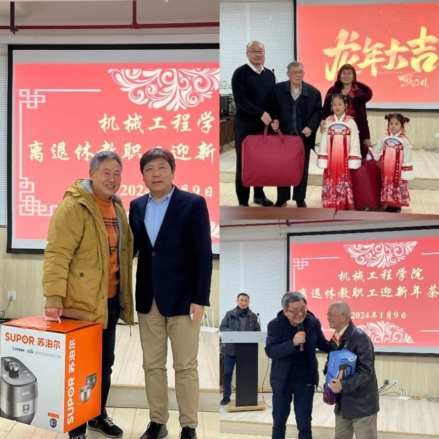 离退休教职工迎新年茶话会在交大二村教工之家多功能厅举行。学院党委书记张俊斌、副院长周光辉、工会主席戚社苗、院办主任张新功及部分教职工代表与老同志欢聚一堂,共贺新禧,共话国产探花