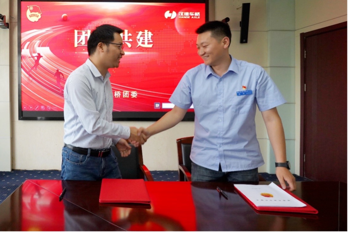 团委和汉德车桥团委相关工作情况,并在学生科创竞赛合作、社会实践育人等方面达成了院企共建意向。双方签订了团委共建合作协议。