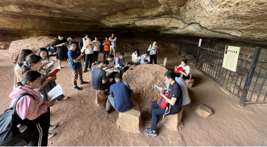 薛家寨四号红军寨的巨石是当年陕甘边特委驻地的会议桌,在这里我们共同进行了党纪学习教育。在感受过革命先烈生动的事迹后,我们更加体会到学习《中国共产党纪律处分条例》的必要性——只有严明的党规党纪才能保证队伍的纯洁性,才能保证广大群众的根本利益,才能扎根群众、践行群众路线。开展党纪学习教育是加强党的纪律建设、推动全面从严治党向纵深发展的重要举措,也是广大党员干部不断用党规党纪校正思想和行动,增强纪律意识、提高党性修养的重要过程。党支部带领我们再次重点学习了中国共产党纪律处分条例总则以及对违反生活纪律行为的处分。在学习的过程中,党支部介绍了与我们息息相关的党纪条例,指出了对党规党纪不上心、不了解、不掌握、流于形式主义等问题,引导我们强化纪律意识、加强自我约束、提高免疫能力,始终做到忠诚干净担当,鼓励我们在遵规守纪前提下,为推进中国式现代化拼搏奋斗。