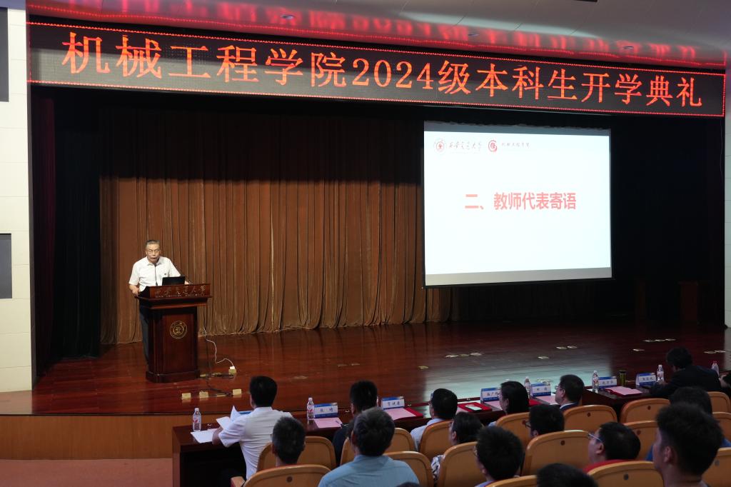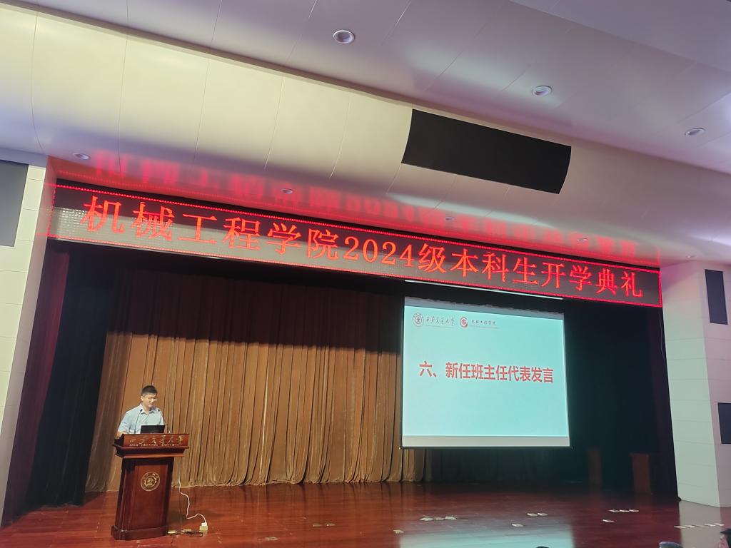 2024级本科生开学典礼在兴庆校区主楼多功能报告厅举行。近400名来自五湖四海的机械学子齐聚一堂,共同见证和庆祝人生新征程的开启。