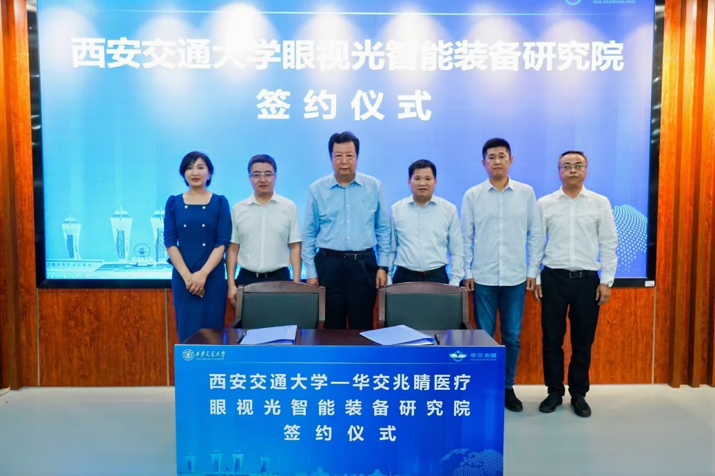 科研院副院长、产教融合与成果转化处处长陈娟与西安华交兆睛医疗器械有限责任公司总经理谷峰签署国产探花