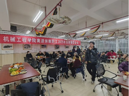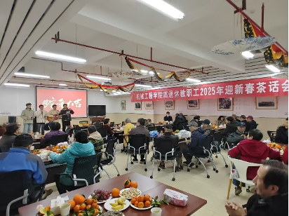 离退休教职工迎新年茶话会在交大二村教工之家多功能厅举行。学院分党委书记张俊斌、常务副院长雷亚国、院办主任张新功及部分教职工代表和老同志欢聚一堂,共贺新禧,共话学院美好未来。活动由学院工会主席戚社苗主持。