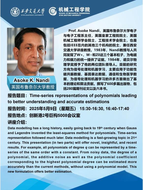 英国皇家工程院Asoke Nandi院士讲座通知