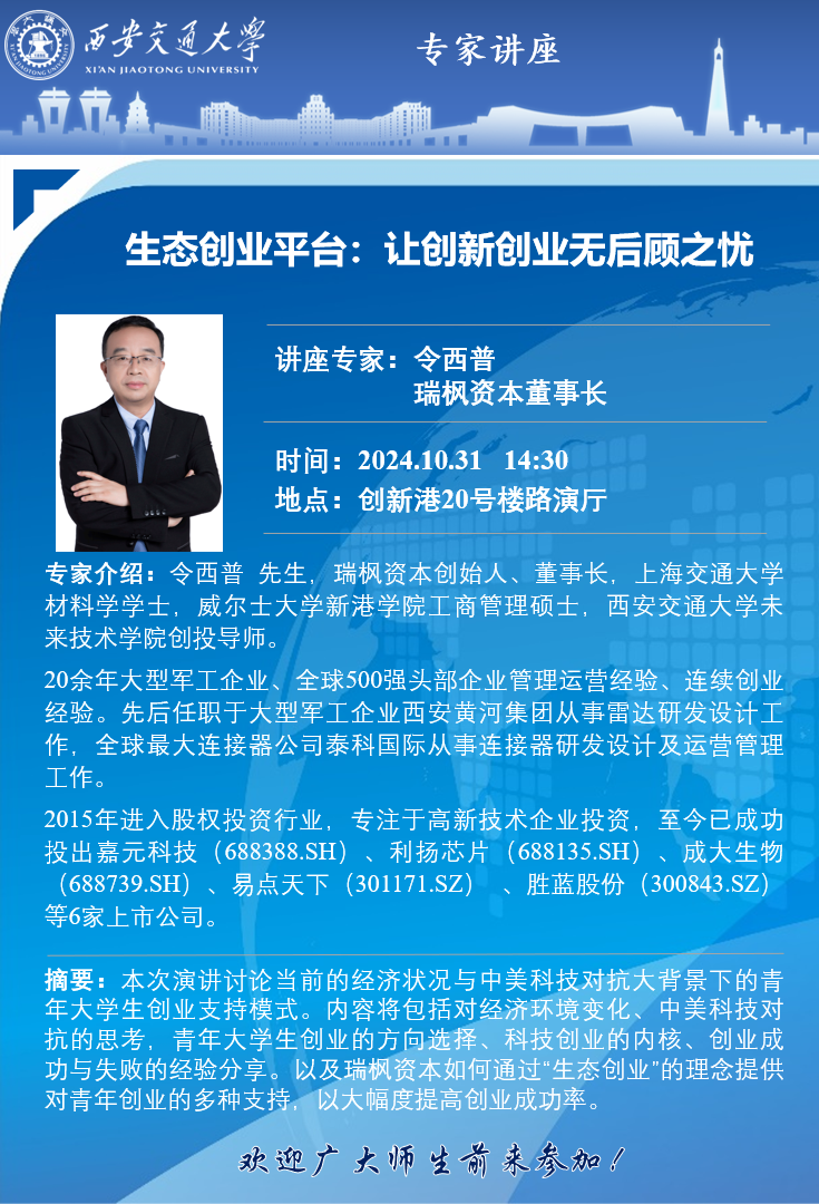 讲座题目:生态创业平台:让创新创业无后顾之忧