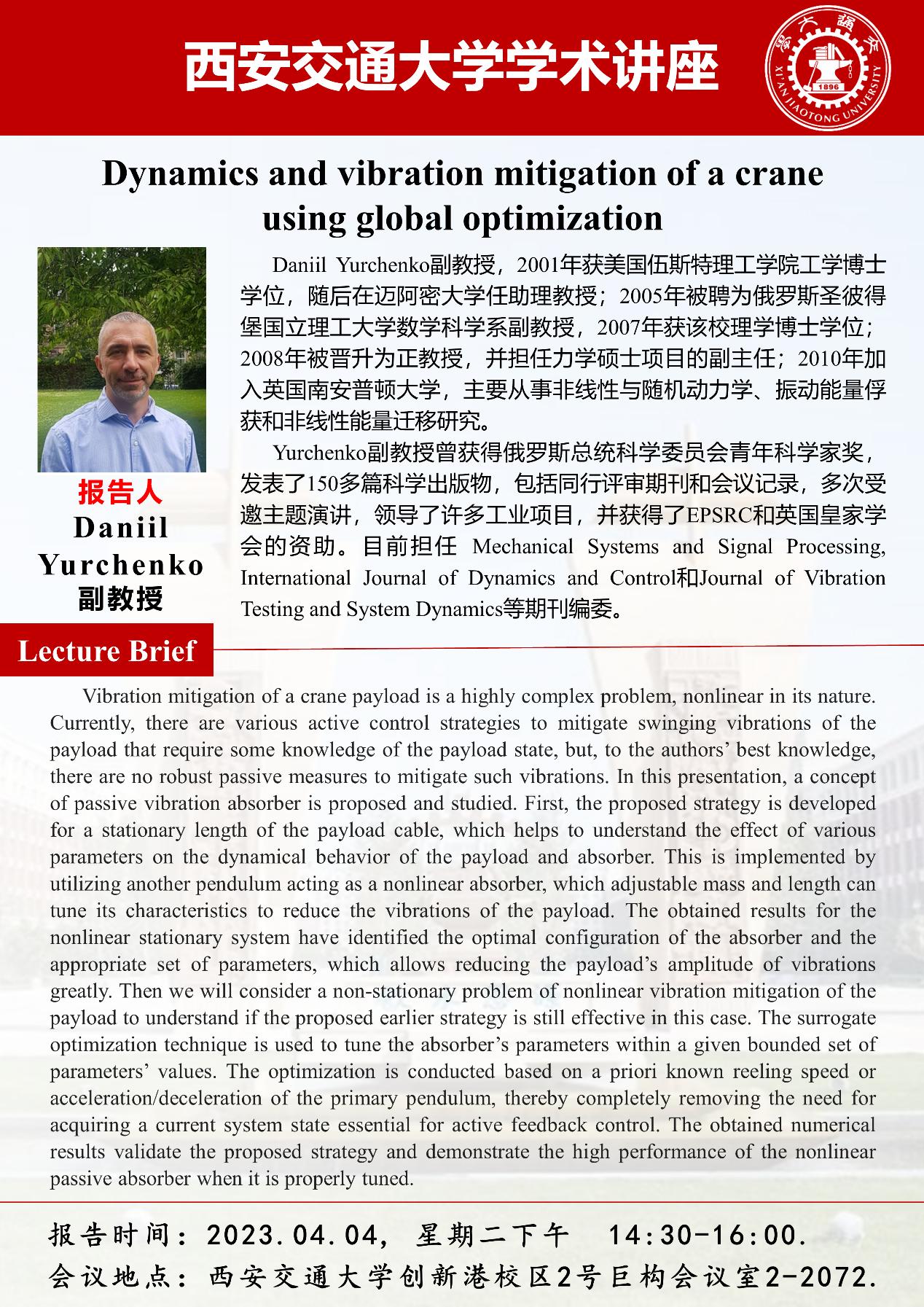 讲座题目:Dynamics and vibration mitigation of a crane using global optimisation