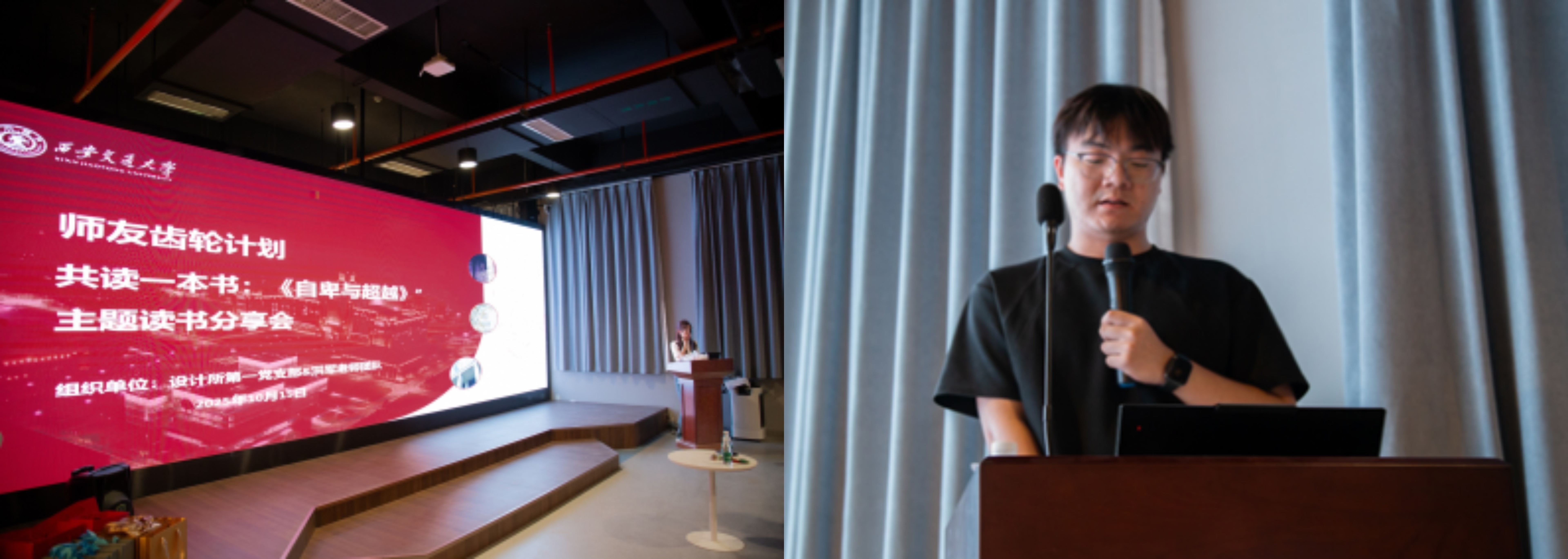 书籍是思想的灯塔,照亮文明传承之路。2025年10月15日,为响应学院“师友齿轮计划”号召,设计所第一党支部联合洪军老师团队举办师生“共读一本书”活动。洪军副校长亲自为参与师生选购了心理学经典《自卑与超越》,赵强强、雷杨浩两位老师与同学们围绕此书展开深度对话,在阿德勒个体心理学的智慧长河中,共同完成了一场从自我觉察到社会价值的探索之旅。