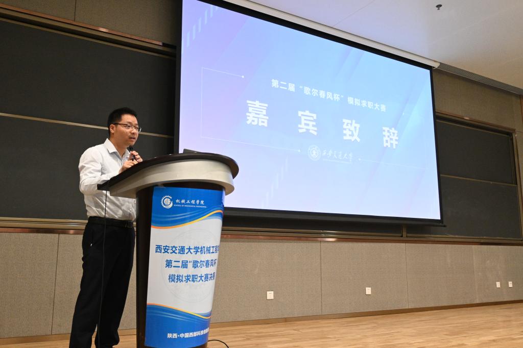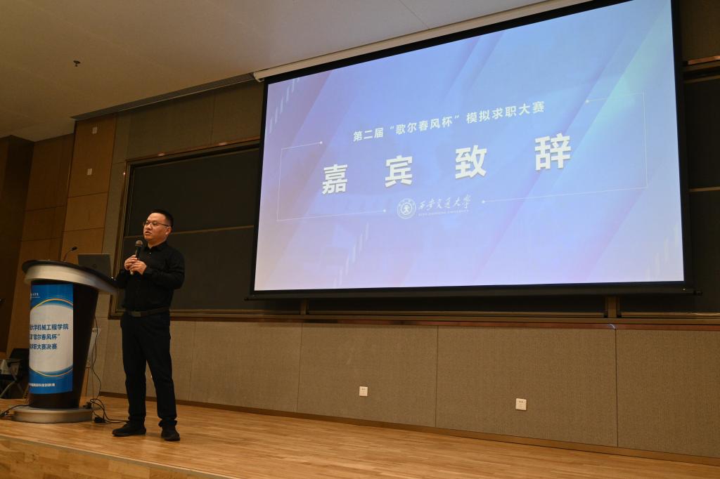 在校企合作方面的深厚渊源,强调了歌尔公司在行业内的领先地位,希望未来与交大继续保持合作,共同发展。包凯表示,“歌尔春风杯”模拟求职大赛不仅是一场展示与比拼的竞赛,更是一个启迪创新、促进实践、增强就业意识的宝贵平台。它既为同学们提供了展示创新精神和实践能力的机会,也为校企的交流合作搭建了重要桥梁。