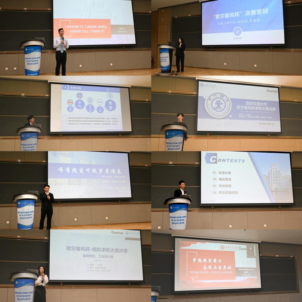 决赛以竞职PPT展示与提问应答的形式展开,共八名选手参加决赛。参赛选手结合自身经历与就业需求,展示个人能力,回答评委问题。评委根据选手的现场表现进行打分,共评选出一位一等奖、两位二等奖、五位三等奖。