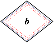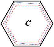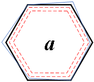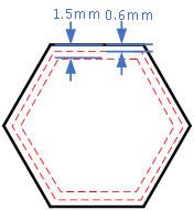 c左上与右下两顶点均沿对称轴方向超出0.6mm缝隙0.3mm;其余顶点均分别在其对应的对称轴上超出1.5mm缝隙0.45mm(即在0.6mm与1.5mm缝隙的中间)