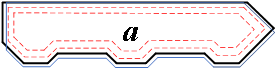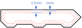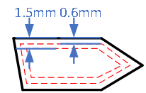 a左侧线段和顶端线段全部超出1mm缝隙0.5mm;右侧两折线段,超出1.5mm缝隙0.25mm;右下角顶点交于1mm缝隙之上,左下角顶点则取在扣板理论尺寸边界与1mm缝隙之间即可;