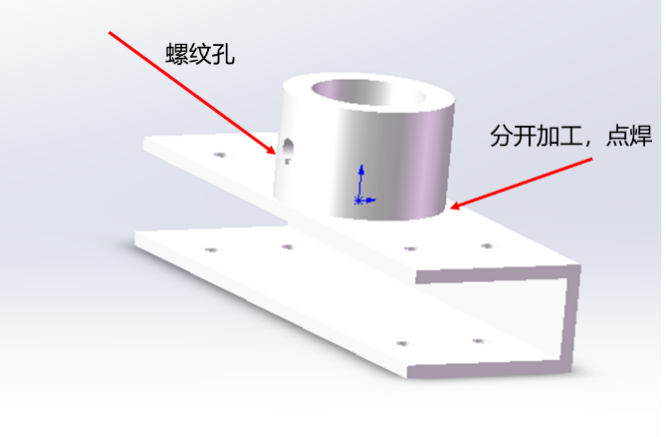由底座+支架两个零件通过沉头螺钉组装,底板上连接支架的孔带螺纹 |