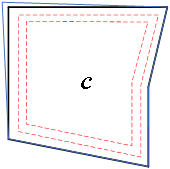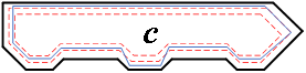 c左侧边位于1mm缝隙与1.5mm缝隙中间,顶边超出1mm缝隙0.5mm,右上边位于1mm缝隙上,底侧的水平边均位于1mm缝隙和1.5mm缝隙中间(即超出1.5mm缝隙0.25mm),至于水平边的顶点位置,均向内侧取缝隙,位于对应缝隙顶点之下。